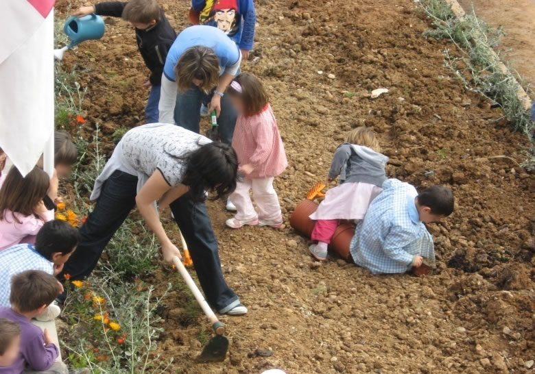 - Huerto escolar en el colegio Las Castillas de Torrejón del Rey, en Guadalajara.